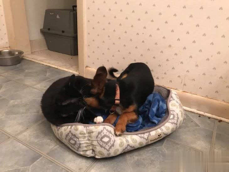 按规矩,猫狗得分开养——免得打架嘛。可这俩不一样,分开就闹腾,猫哭,狗急,活脱脱一出情感剧。