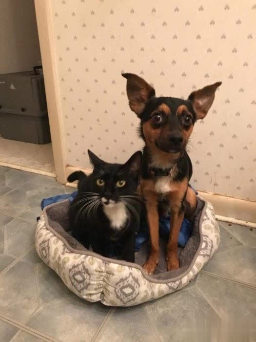 还给俩起了名字:狗叫 Gómez(戈麦斯)猫叫 Morticia(莫提西亚)