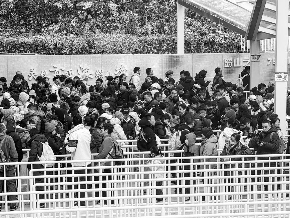 ↓自助取票机前游客摩肩接踵。