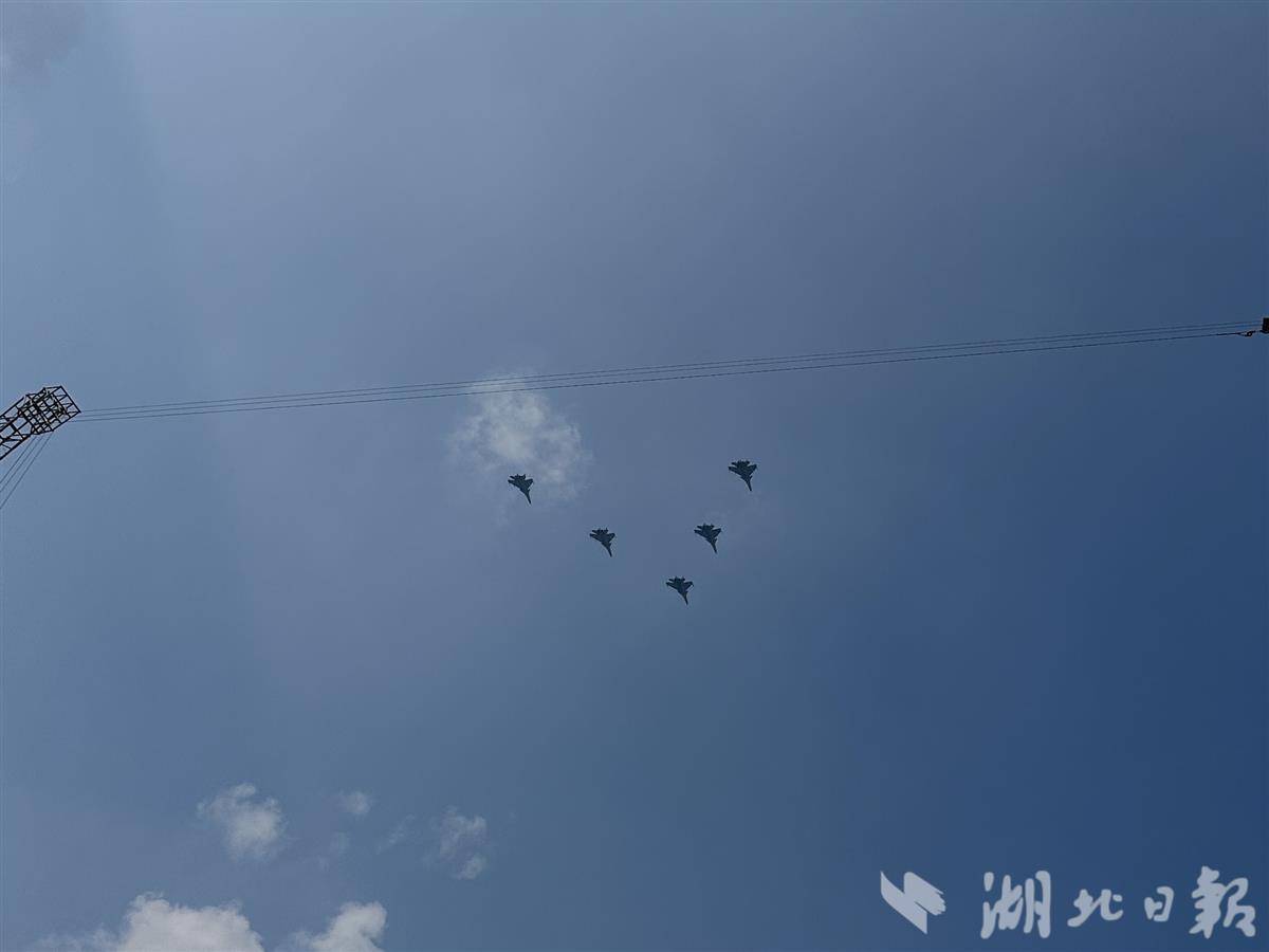 预警指挥机梯队接受检阅。(湖北日报全媒记者 许旷 摄)