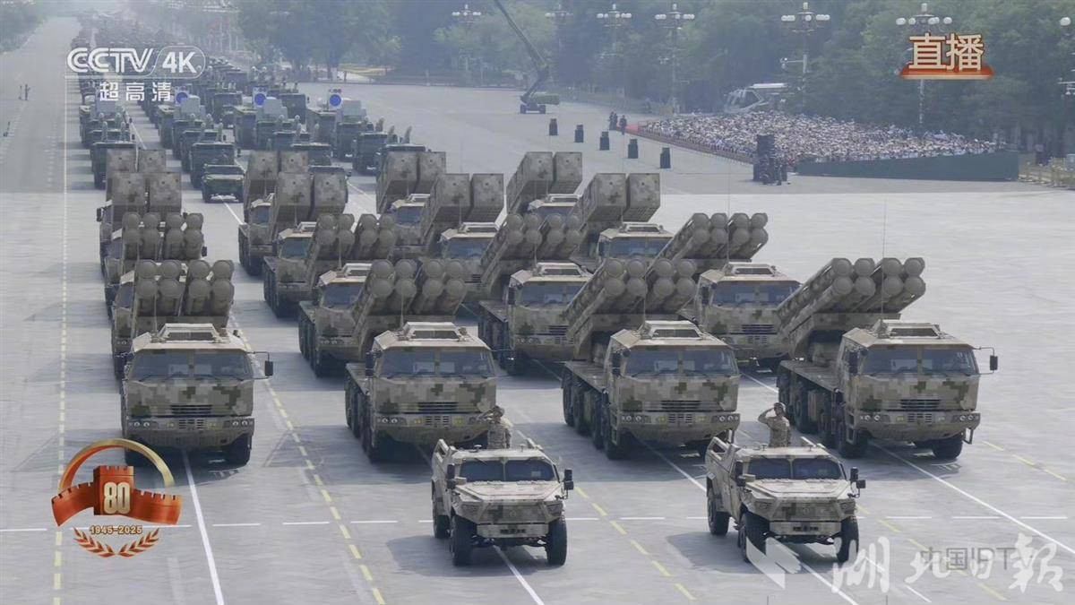 一辆辆战车、一门门火炮、一枚枚导弹整齐列阵,如钢铁洪流般缓缓驶过天安门广场,展示出我国军队现代化建设的巨大成就。
