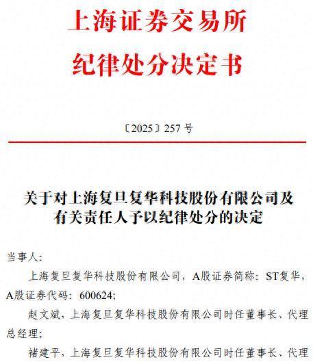 责任认定方面,ST复华多期定期报告存在虚假记载,其行为违反了有关规定。上交所决定对ST复华予以公开谴责,对时任董事长、代理总经理赵文斌、褚建平、宋正,时任财务负责人赵振兴,时任副总经理沈定、周驰浩予以通报批评。