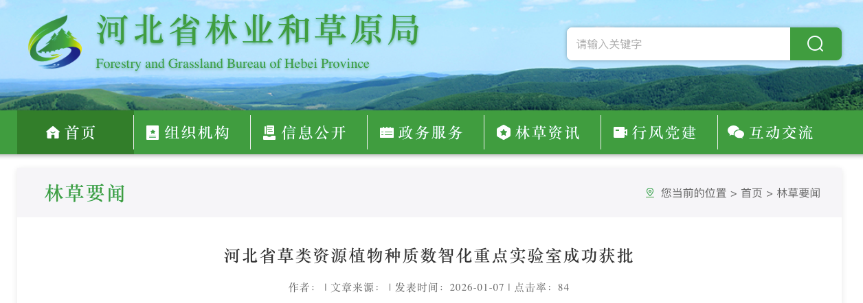 近日,“河北省草类资源植物种质数智化重点实验室”正式获批,入选2025年度河北省新建省级重点实验室名单。该实验室由河北省林草种苗与经济林花卉中心、北京林业大学和中农垦草业有限公司共同申报,是河北省首个以草类资源为主的省级重点实验室。
